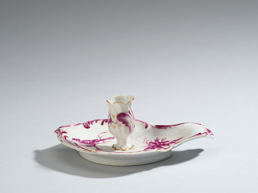 Europees porselein in de verzameling Willet is in hoofdzaak afkomstig uit Duitse manufacturen als Meissen en Fürstenberg. Dit in bietenrood en goud beschilderde blakertje is een van de weinige stukken Hollands porselein in de collectie. De kaarsenhouder heeft de vorm van een bloemknop. Met zijn asymmetrische vorm is het een icoon van het Hollandse rococo. Ook de rocailleversieringen in reliëf dragen hiertoe bij. De vogel in de beschildering zit op een tak die zich grillig naar de vorm van de blaker voegt. ( Bert Vreeken)