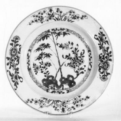 bamboe op rots met 2 bloemboeketten en 2 bloemtakken op de rand- Trefwoorden