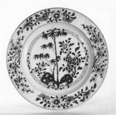 bamboe op rots met 2 bloemboeketten en 2 bloemtakken op de rand- Trefwoorden