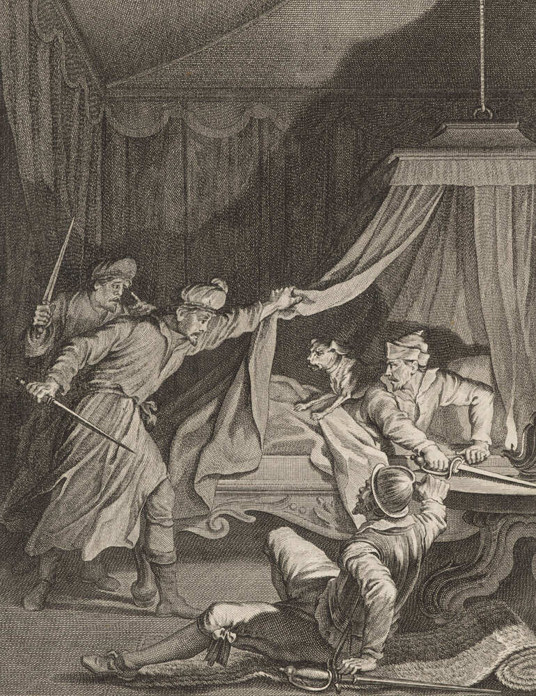 - Zevende zang: Willem I in den nacht in zijn tent overvallen, maar door geblaf van zijn hond gewaardschuwd, 1780