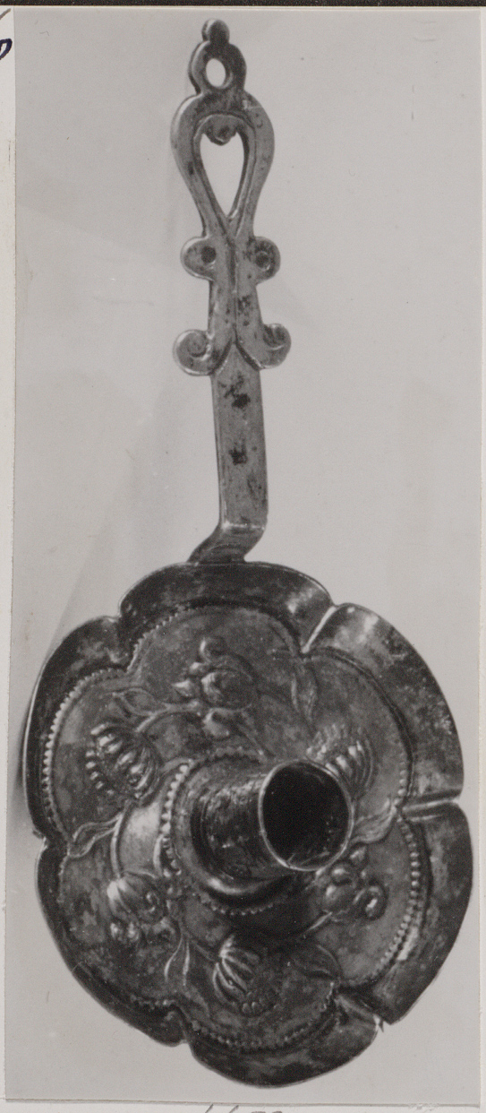 Zeslobbige blaker met gedreven bloemen en met lange opengewerkte steel.