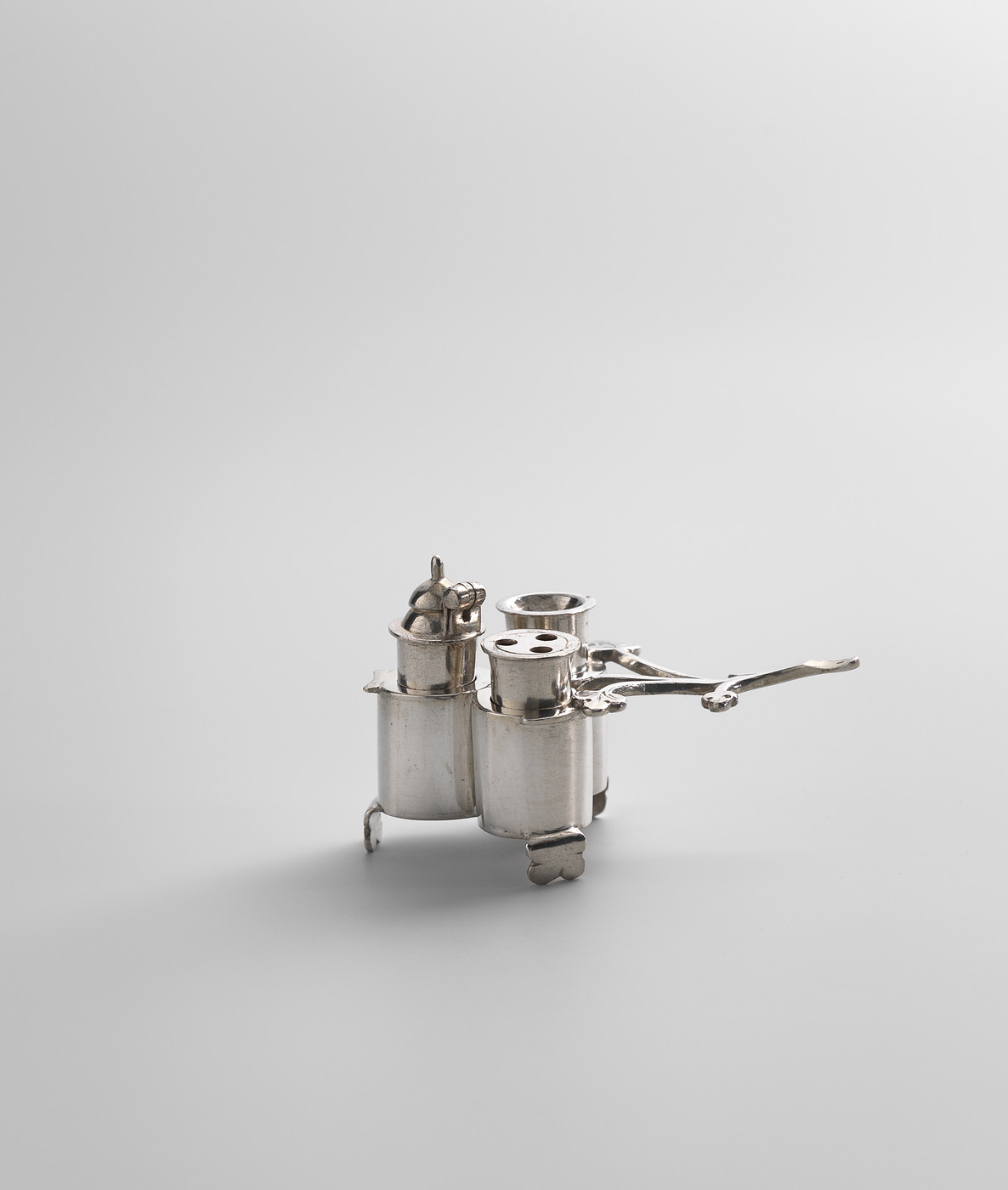 Het inktstel heeft een bijzondere vorm die aan een klavertje drie doet denken. De greep is in de vorm van een takje dat uitloopt in een driepas met kokers. Hierin bevinden zich een inktpot, een zandstrooier en een pennenhouder, alle uitneembaar. Mogelijk heeft Duller zich laten inspireren door een tinnen voorbeeld. In de tweede helft van de achttiende eeuw, de periode waarin deze zilversmid werkzaam was, kwamen steeds meer halffabricaten op de markt, zoals gegoten onderdelen. Duller maakte hier veelvuldig gebruik van. ( Bert Vreeken)