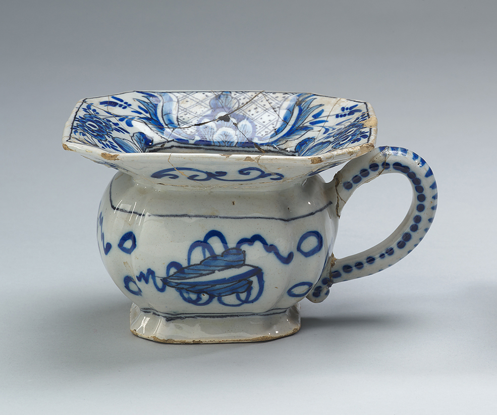 Achthoekige kwispedoor beschilderd met Chinees décor.- Trefwoorden