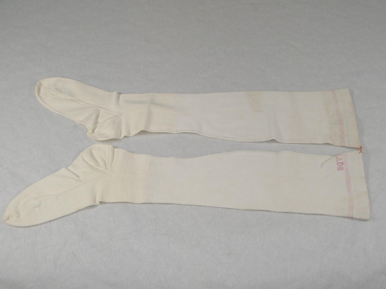 Paar machinaal gebreide katoenen kousen, met initialen.- Trefwoorden