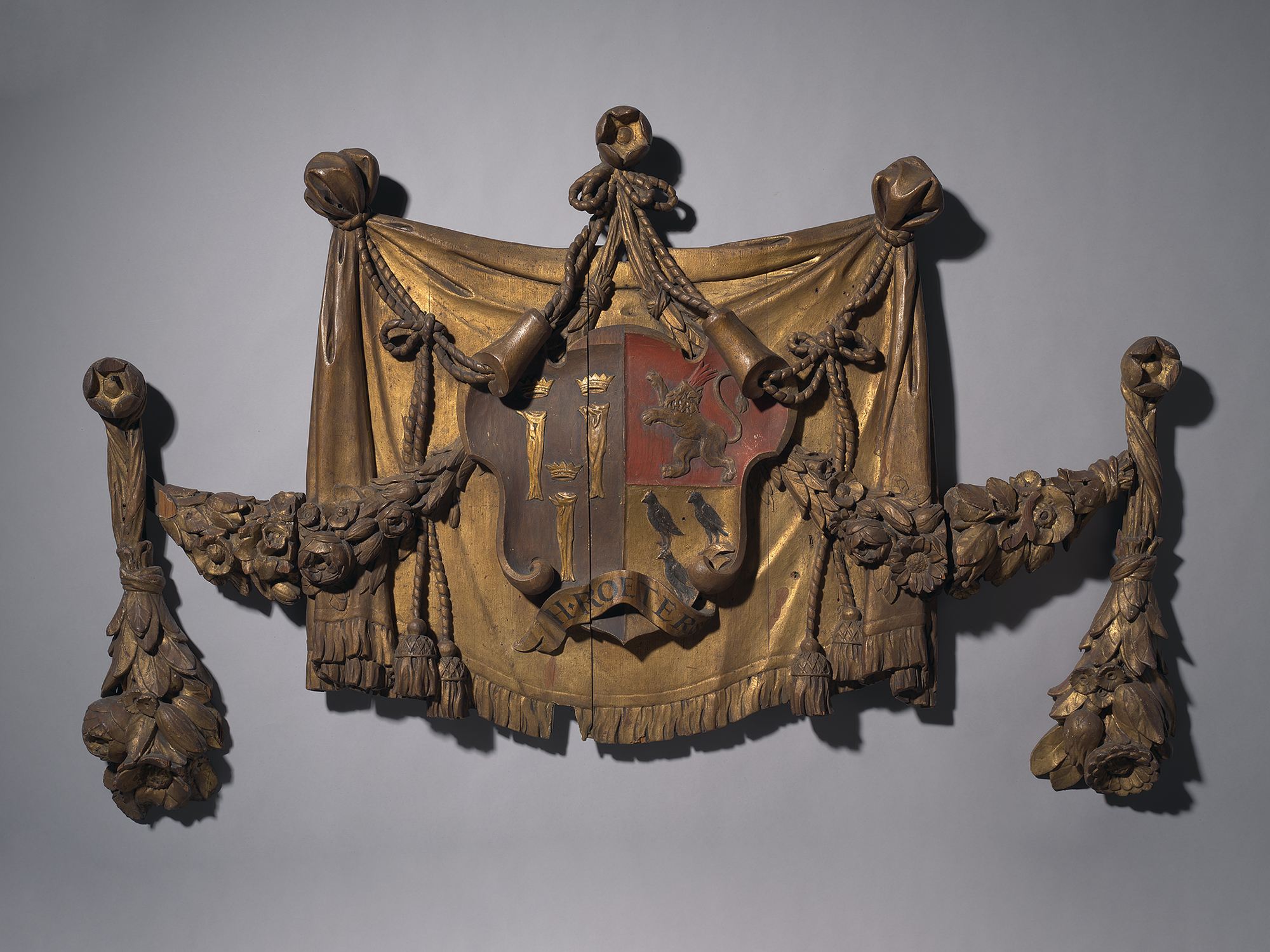 in 1656 ontving Quellinus 168 gulden voor het vervaardigen van vier `wapens vanden heere commissarissen,/ door ordre der heeren ende borger Myn heer graaf ende mijn heer spigel'. Deze vermelding heeft vrijwel zeker betrekking op de vier rijk gesneden wapenborden van leden van de families Roeters, Reynst, Bas en Trip (zie ook cat. nrs. 98, 100, 101), die bij de inwijding van het nieuwe stadhuis in 1655 commissarissen waren van de Wisselbank.