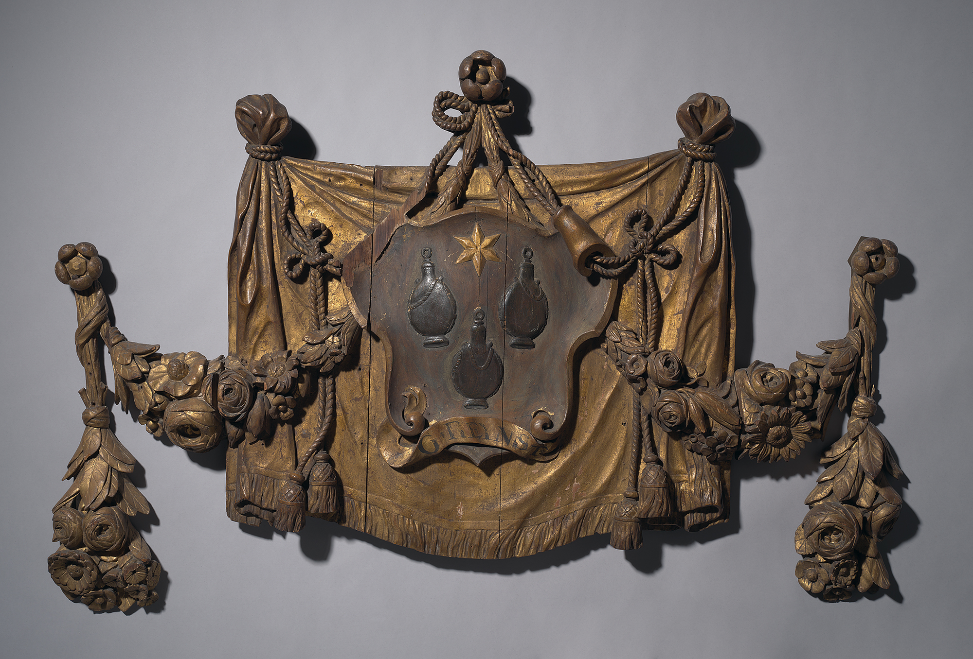 in 1656 ontving Quellinus 168 gulden voor het vervaardigen van vier `wapens vanden heere commissarissen,/ door ordre der heeren ende borger Myn heer graaf ende mijn heer spigel'. Deze vermelding heeft vrijwel zeker betrekking op de vier rijk gesneden wapenborden van leden van de families Roeters, Reynst, Bas en Trip (zie ook cat. nrs. 98, 100, 101), die bij de inwijding van het nieuwe stadhuis in 1655 commissarissen waren van de Wisselbank.