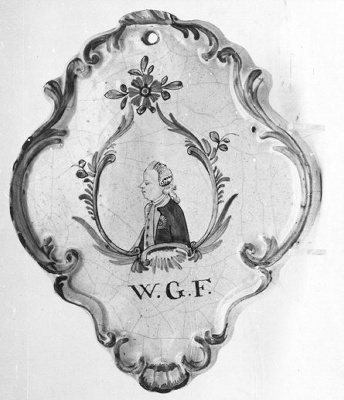 - initialen voorzijde: W.G.F.: onder de cartouche de initialen W.G.F.