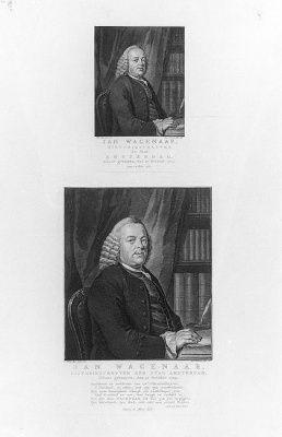 opschrift mid.o. de bovenste prent gegraveerd: jan wagenaar, historieschrijver der stad amsterdam, aldaar gebooren, den 21 october 1709.yntema & tieboel excud.