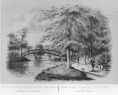 - Gezicht op de grote vijvers en Zwitserse brug in Den Haag