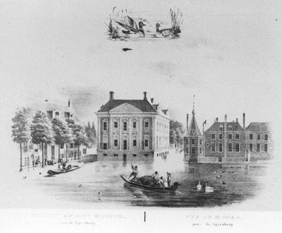 - Gezicht op het museum, van de Vijverberg in Den Haag