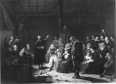 - The Pilgrimfathers (holding their first meeting for public worship in N.-America, Sunday, January 21, 1621), 1860
