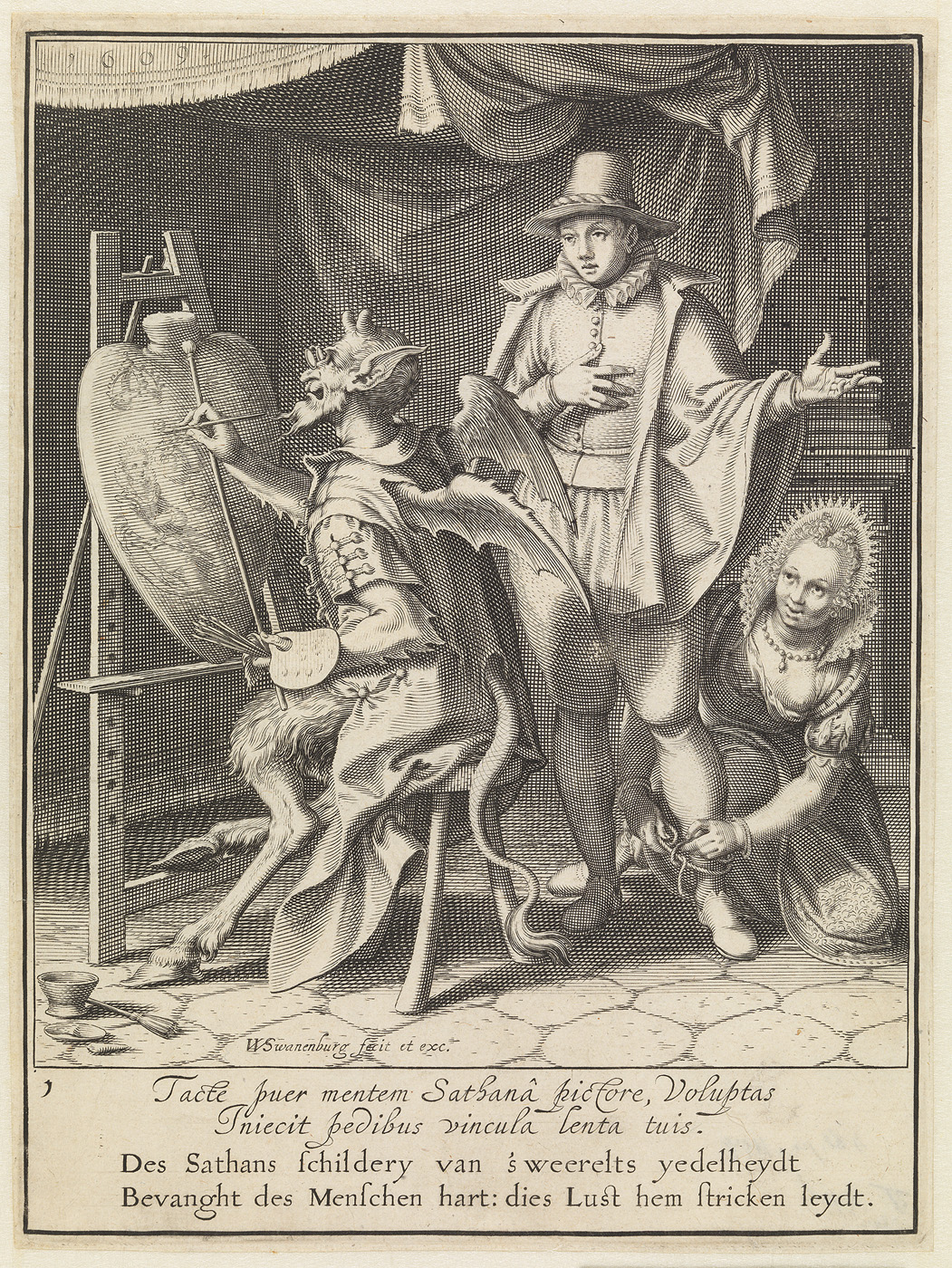 opschrift onder: Tacte puer mentem Satahan pictore, Voluptas