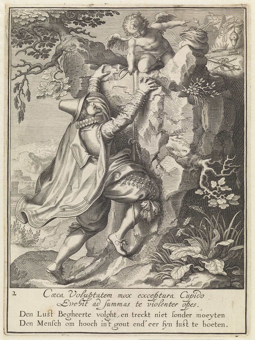 Den lust begheerte volght, en treckt niet sonder moeyten den mensch om hooch in 't gout end" eer syn lust te boeten (nr. 2 uit de serie: allegoriëen op de macht van de wellust en het geld), 1609