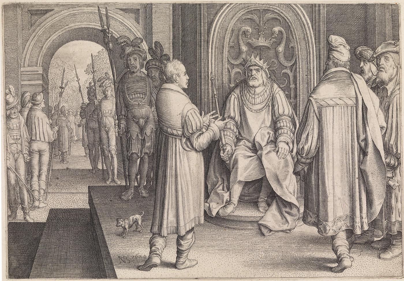 - Nr.5 Jozef bij de koning van Egypte om diens droom uit te leggen. (uit de serie:de geschiedenis van Jozef), 1629