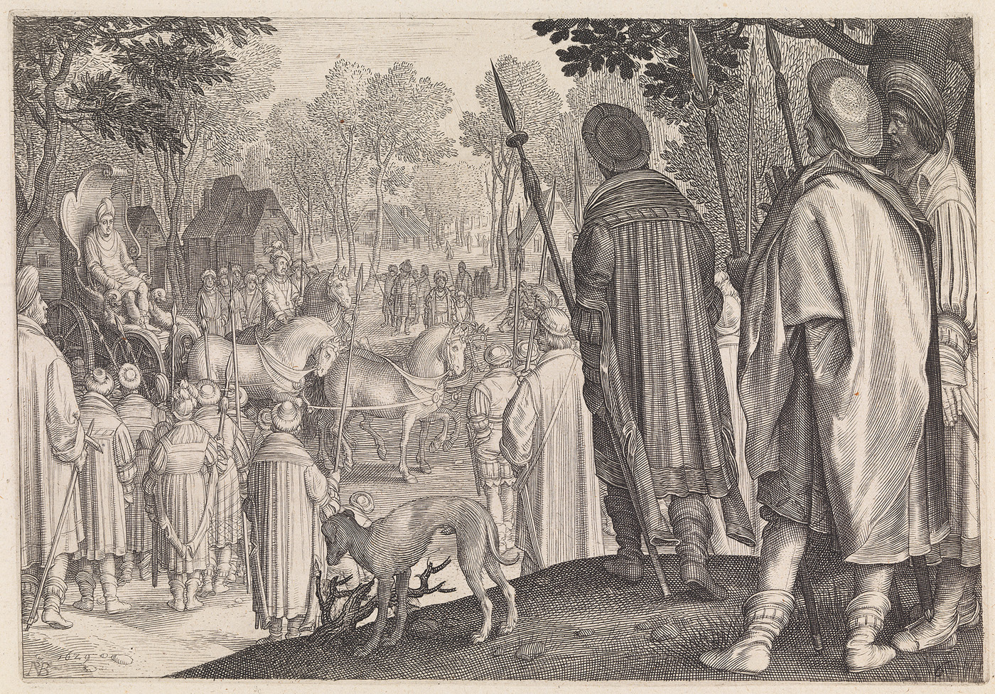 - Nr. 6 Jozef aangesteld als onderkoning van Egypte wordt rondgereden in een wagen. (uit de serie:de geschiedenis van Jozef), 1629