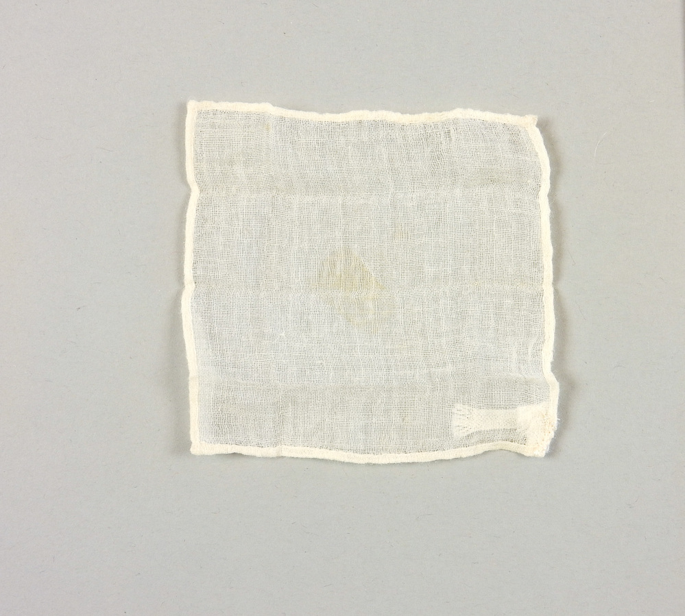 Vierkant lapje van batist met de hand gerold zoompje.- Trefwoorden