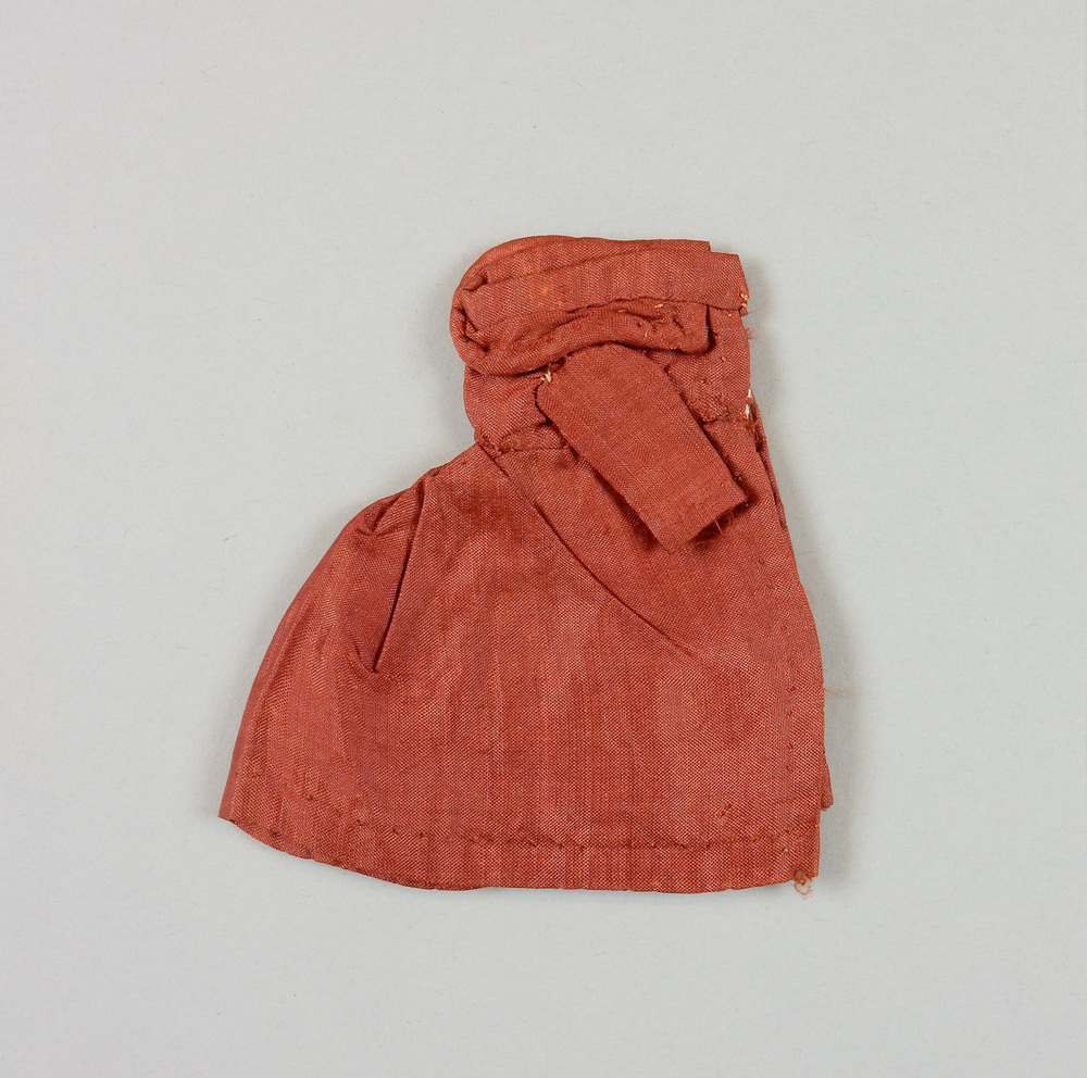 Aangeknipt jasje van zijde met een linnen bandje. De rug is speciaal achter bij 't middel ingerimpeld en krijgt hierdoor de kegelvormige crinoline-lijn uit deze periode. De voorkant is gérend en glad. Halflange gladde mouwtjes. Langs opstaand halsboordje een smal rond kraagje. Langs de taillenaad een binnenvoerinkje van wit linnnen bandje.- Trefwoorden