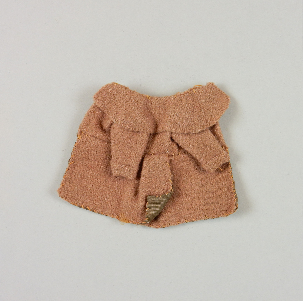 Gérend jasje van wol (mantelstof) en zijde (taft) met ronde kraag (soort pelerine). Aangeknipt model, achter in de rug een overslag. (Over de stof gelegd splitje). Halflange gladde rechte mouwtjes met omslagen onderaan. Vanaf 't middel gevoerd met grijs groene zijde, en daar met handgenaaide steekjes omgenaaid.- Trefwoorden