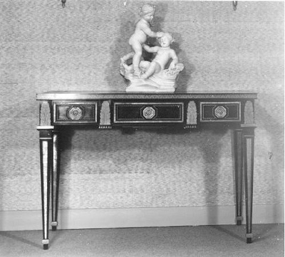 in depot - Herkomstverz. fam. Bierens de Haan (woonden vroeger op het Museumplein 17 te Amsterdam, daarna bevond de tafel zich in het huis 'Schaepeduinen' te Bloemendaal tot 1965, via Nystad Antiquairs aangekocht