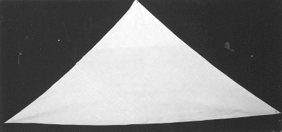 Witte driehoekige fichu van nopjeskatoen, met de hand omgezoomd. Met zwarte inkt gemerkt: 590.- Trefwoorden