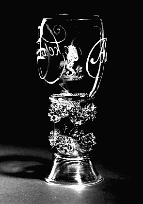 Op de kelk een dansend mannetje en het opschrift: Hansie inde kelder/.