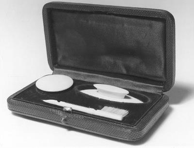 - lengte borstel: 7.5 cm; breedte borstel: 0.6 cm; hoogte borstel: 1.5 cm; lengte doos: 12.5 cm; breedte doos: 7.5 cm; hoogte doos: 3.2 cm; diameter doosje met poeder: 3.5 cm; hoogte doosje met poeder: 1.5 cm; lengte polissoire: 7 cm;