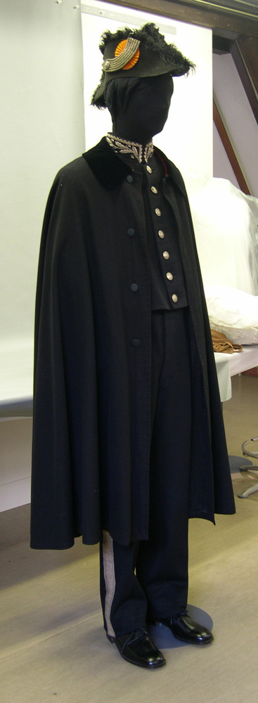 Het getoonde ambtskostuum is gedragen door de burgermeesters Willem de Vlught (1921-1941) en Arnold D’Ailly (1946-1957). Bij zijn installatie in 1946 kreeg D’Ailly het ambtsgewaad van zijn voorganger. D’Ailly was ook de laatste die een ambtskostuum droeg. Vlak voor zijn aftreden droeg hij het op 15 oktober 1956, tijdens zijn inspectie van leden van de Koninklijke Studenten Schietvereniging Amsterdam. ( Annemarie den Dekker)