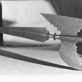 - lengte: 165.5 cm; breedte: 19 cm; lengte kling: 39 cm; breedte kling: 19 cm; lengte veer: 47 cm;