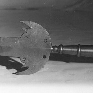 - lengte: 195 cm; breedte: 10 cm; lengte kling: 25 cm; breedte kling: 10 cm; lengte veer: 40.5 cm;