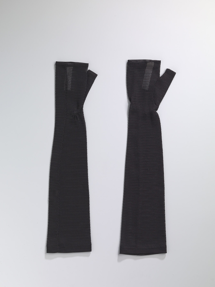 Paar zwarte gebreide katoenen mitaines. Bijzonder door het eenvoudige breisel.- Trefwoorden