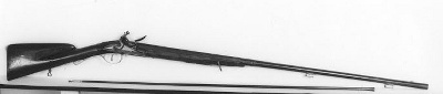 In zijn tijd een duur vuursteen geweer van met zilverbeslag met een Amsterdams singatuur. Laadstok met varkenstaart.- Trefwoorden