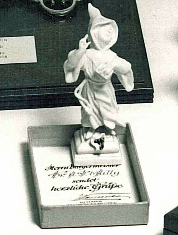 opschrift onderop: gekroond wapen met Nymphenburg - schenking 1956-09-04