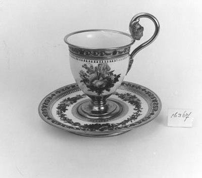 monogram onderzijde kop: C. Het spiegelmonogram L waarn een lelie + 't woord Sèvres + 24 (jaartal)