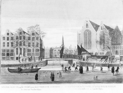 - Wintergezicht, op de Singel voor de oude Luthersche oude kerk, 1800 - 1899