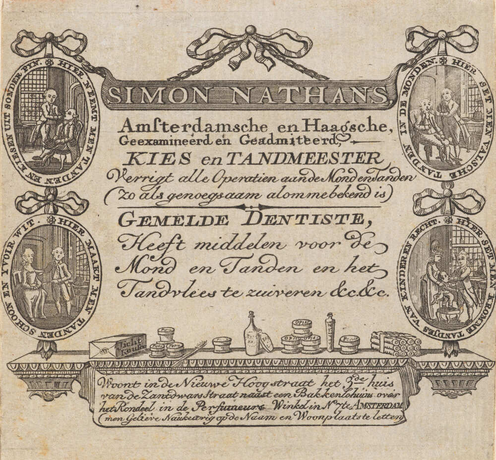 - Aankondiging van Simon Nathans kies en tandmeester te Amsterdam