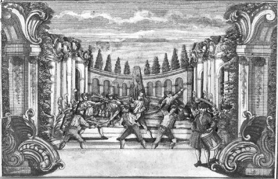 - Décortje "Theater scène met duellerende personen", 1700 - 1799