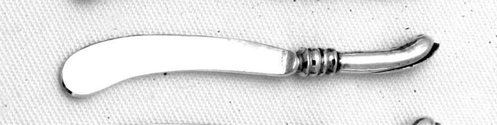 Lemmet is spatelvormig met ingesnoerd aanzet, pistoolvormig handvat.- Trefwoorden