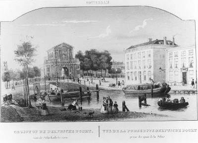 - Gezigt op de Delftsche Poort van de Schiekade te zien te Rotterdam