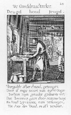 Prent nr. 24 op tekstpagina uit "Het menselyk bedryf" door Jan Luyken- Trefwoorden