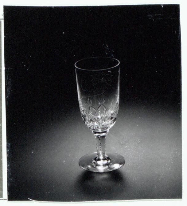 Het glas maakt onderdeel uit van een glasservies afkomstig uit de Bodega Oporto, van 1902 tot 1963 gevestigd op Damrak 92. Vanaf 1934 stopte Sint Nicolaas bij zijn intocht in Amsterdam bij de Bodega, waar hem traditiegetrouw rode Spaanse wijn uit de bokaal werd aangeboden. ( Bert Vreeken)