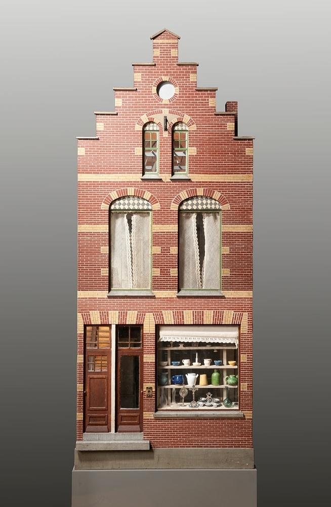 Dit poppenhuis is gemaakt voor een onbekend Amsterdams meisje. Het is een middenstandshuis met twee woonlagen. De benedenwoning ligt achter de winkel. De droogzolder hoort bij het bovenhuis en bevat allerlei miniattributen die horen bij het uitvoerige wassen, drogen en strijken dat in die tijd gebruikelijk was.