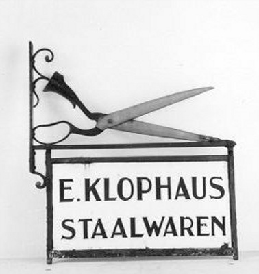 - tekst rechthoekig bord: E. KLOPHAUS/STAALWAREN