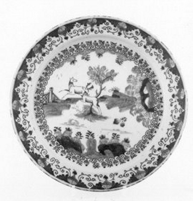 diepe schotel met twee herten in een landschap- Trefwoorden