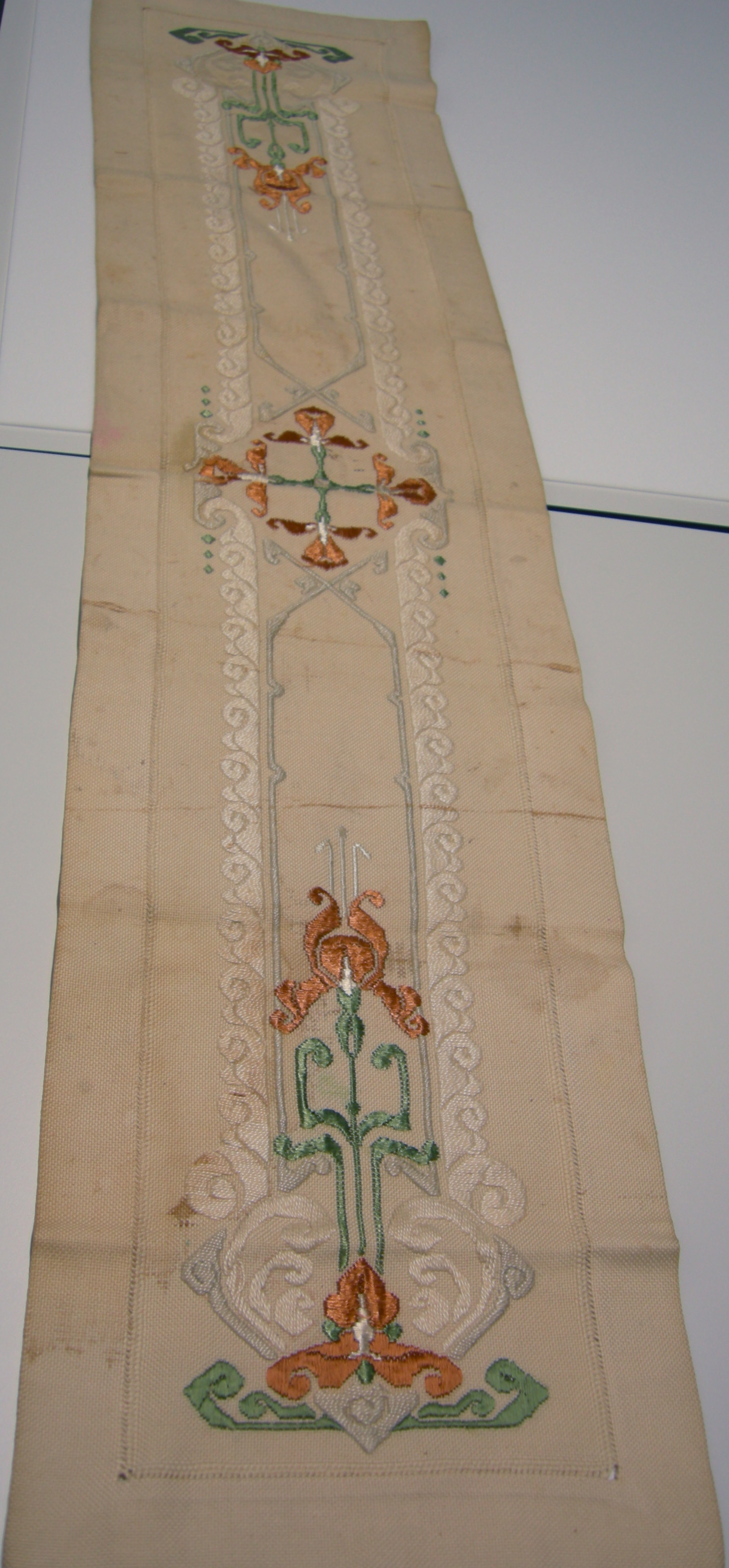 Loper of kleed met Nieuwe Kunst borduursels.