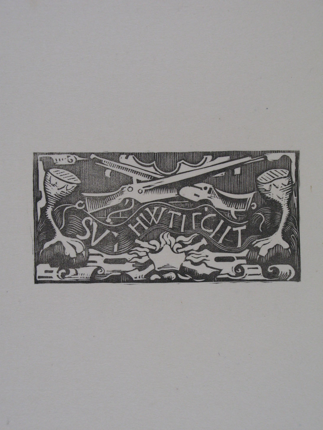 - Houtsnede van de gevelsteen van het smidsgilde "St. Eloy" in de hoofdtoren zuidkant, 1933 - 1935