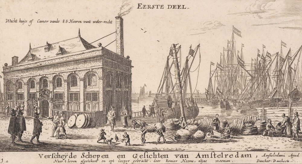 - "Verscheijde schepen en gesichten van Amstelredam," (nr.1 van het eerste deel uit de serie: différents vaisseaux d'Amsterdam)., 1650 - 1675