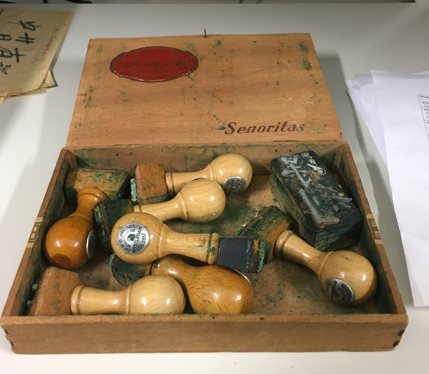 - Chinese boedel, sigarendoosje met daarin acht stempels met Chinese karakters, 1950 - 1990