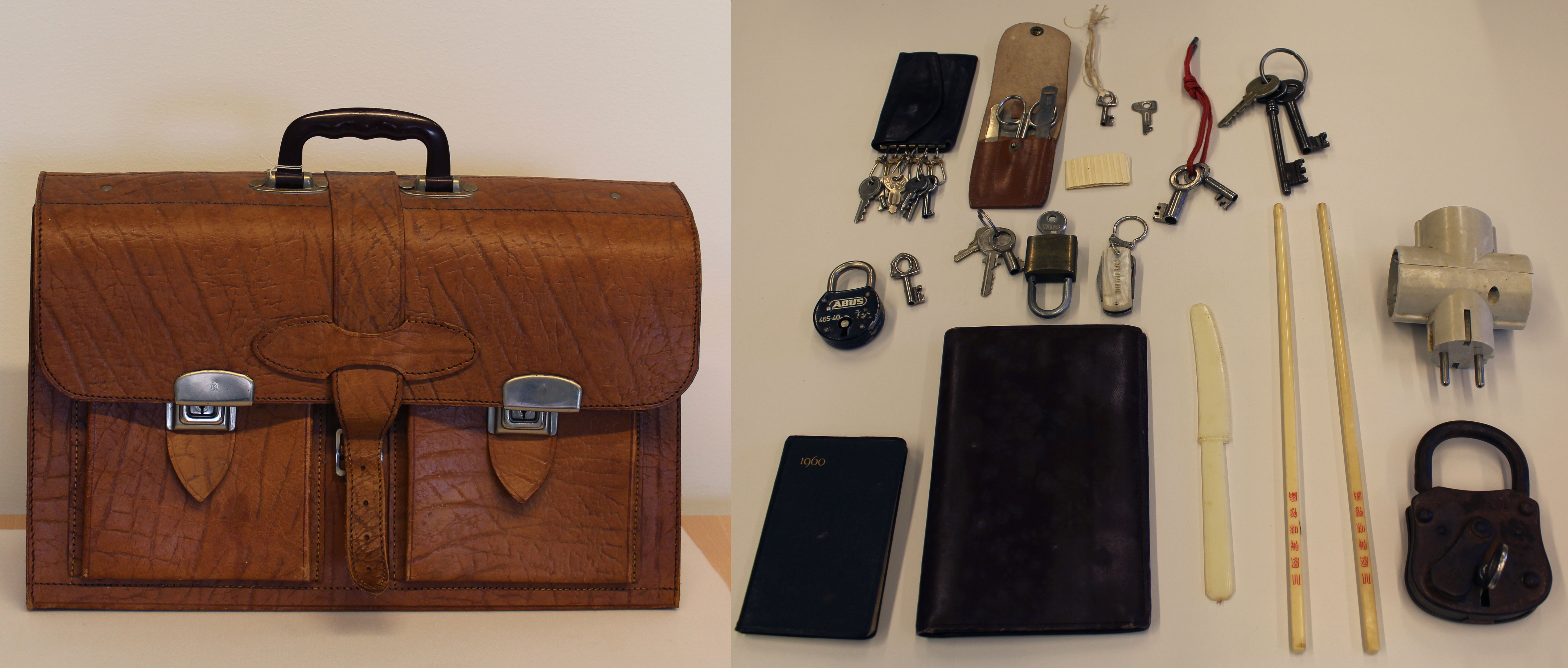 - Chinese boedel, schooltas met inhoud, 1950 - 1990
