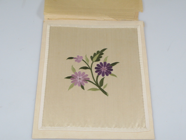 het middenveld heeft een borduurselin satijnsteek bloem en tak, in de kleuren mosgroen, bruin, naturel, lichtgroen, paars en our-roze.- Trefwoorden