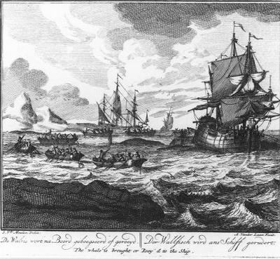 - "De walvis wort na boord geboegseerd of geroeyd." (nr. 7 uit de serie walvisvaart)